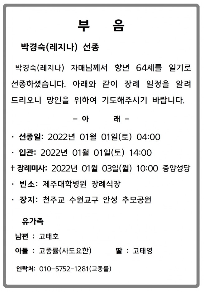 † 고인의 영원한 안식을 위해 기도 바랍니다.