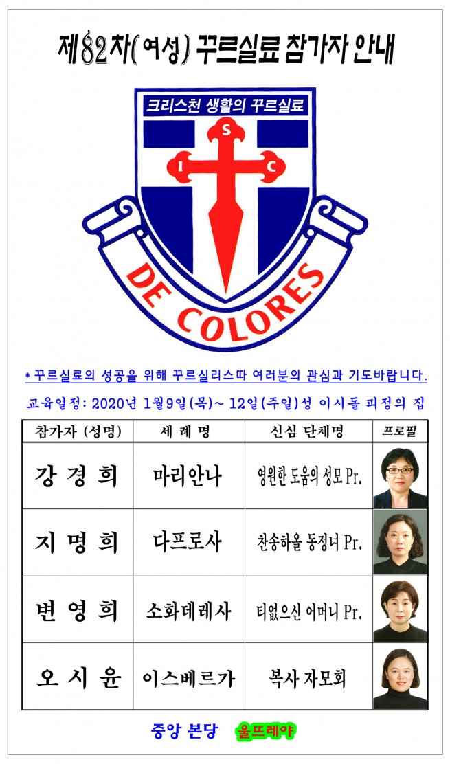 제주교구 제82차(여성) 꾸르실료 참가자 안내