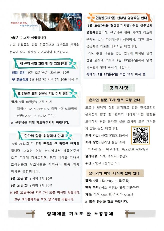 성 김대건 안드레아 사제와 성 정하상 바오로와 동료 순교자들 대축일 경축 이동(2021. 09. 19.)