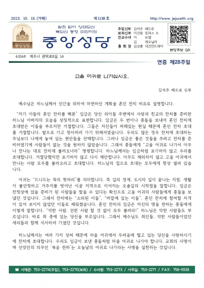 연중 제27주일(군인주일) - 2023. 10. 08.