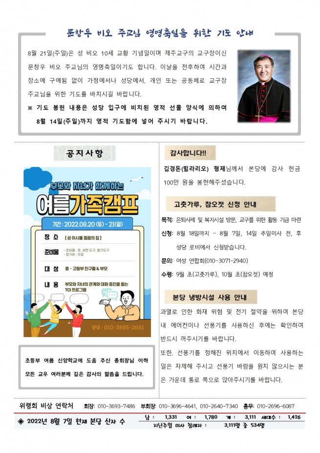 연중 제20주일(2022. 08. 14.)